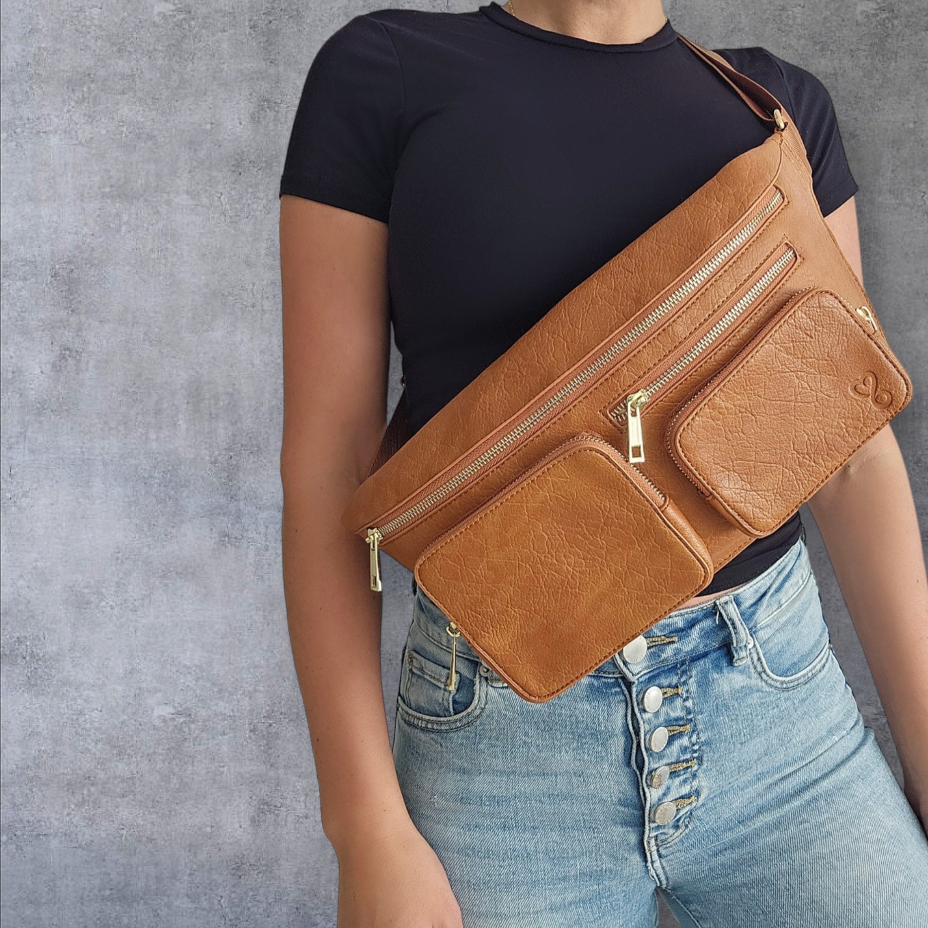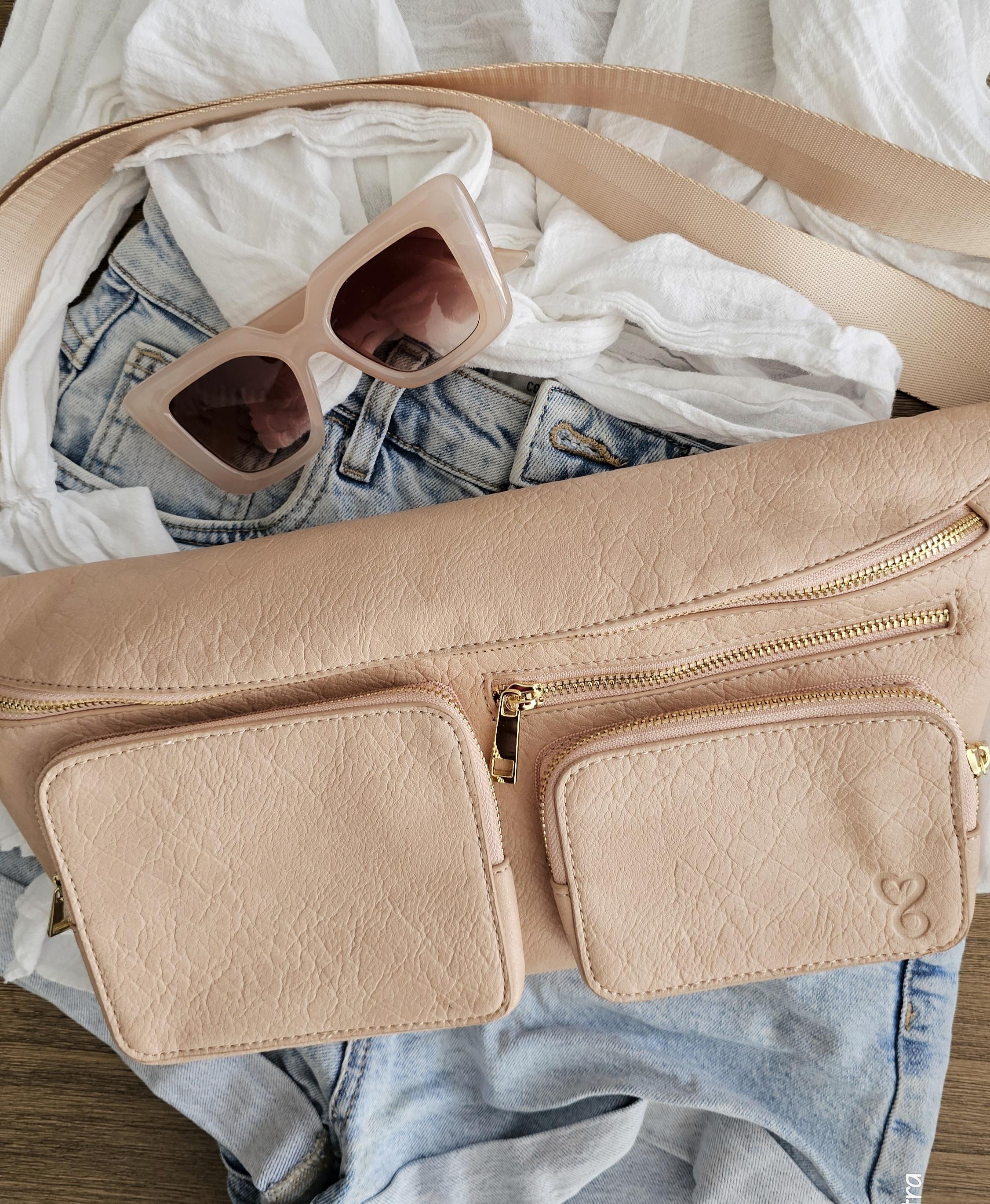 "I've got my first Mumbag in nude and it's honestly the best! It matches all of my outfits too! Gym wear, event wear, any wear! So many different sections and pockets for phones, wallets, keys. Hair ties and clips, lipsticks...your husband/BF/GF's stuff, your kids stuff - anything! Can I also say that these bags feel amazing! Anyone with sensory issues like me will have no issues.I can go through life hands free while looking amazing and not having handbag straps constantly fall off my shoulder. I wear mine crossed over the front for easy access to my things when needed. I can't wait to have one in every colour."